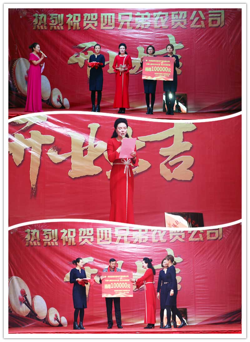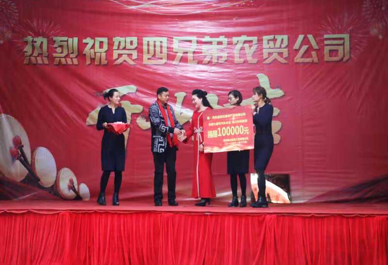 在熱烈的掌聲中,陜西秦川建筑工程有限公司總經理劉愛云、四兄弟農產品有限公司董事長劉三軍,進行了捐贈資金交接儀式,陜西秦川建筑工程有限公司向四兄弟農產品有限公司捐款10萬元。