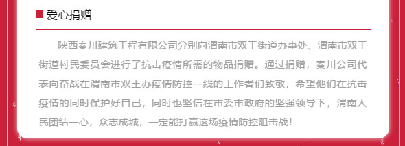【秦川建筑】獻愛心 | 眾志成城抗疫情 秦川團隊在行動