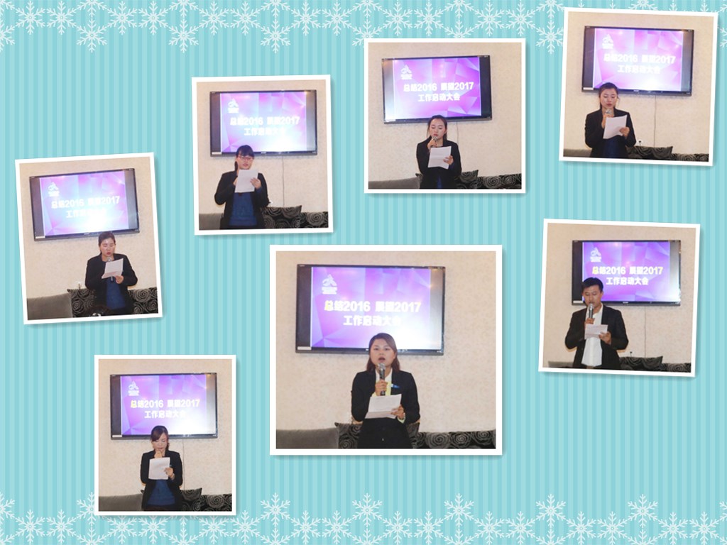 各部門高管及全體員工對2016年的工作做了深刻地總結(jié),并就個自在2016年工作中取得的成績、受到的啟發(fā),工作上的失誤總結(jié)經(jīng)驗教訓(xùn),暢談了自己的成長目標和人生愿景,提出了自己在2017年年度的發(fā)展目標。