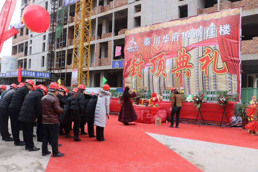 2018年1月23日,由陜西秦川建筑工程有限公司承建的“渭南秦川·華府1#商住樓項目”主體結構順利封頂,公司領導及全體員工、項目負責人及各班組人員參加了此次封頂典禮,公司領導特為日夜奮戰在一線的建筑工人們送上慰問品。